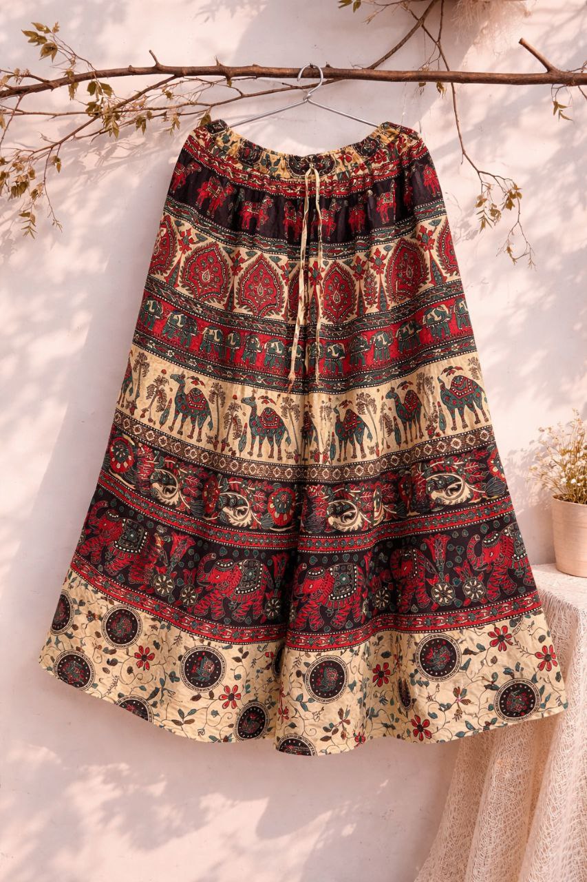Pair it with a crop top, kurti, or a simple solid top to create a stylish boho or traditional look effortlessly.